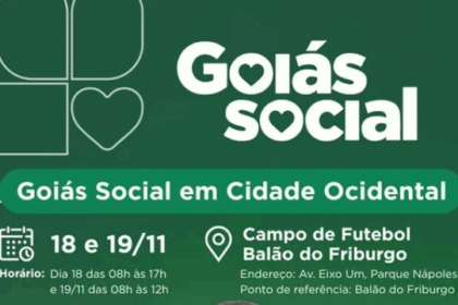 Nos dias 18 e 19 de novembro, o programa Goiás Social chega a Cidade Ocidental com uma ampla oferta de serviços gratuitos nas áreas de saúde, cidadania, assistência social, defensoria pública, q...